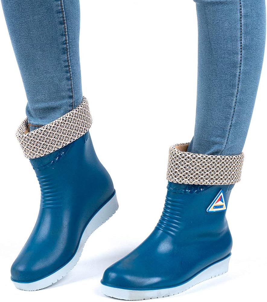 Botas de Agua Mujer Goma Impermeables Botas de Lluvia Atajo Invierno Calentar Zapatos de Trabajo Jardin Slip on Plataforma 2.9cm Beige Negro Azul Rojo EU36-EU41 Botas Zapatos y complementos multiapp.gr