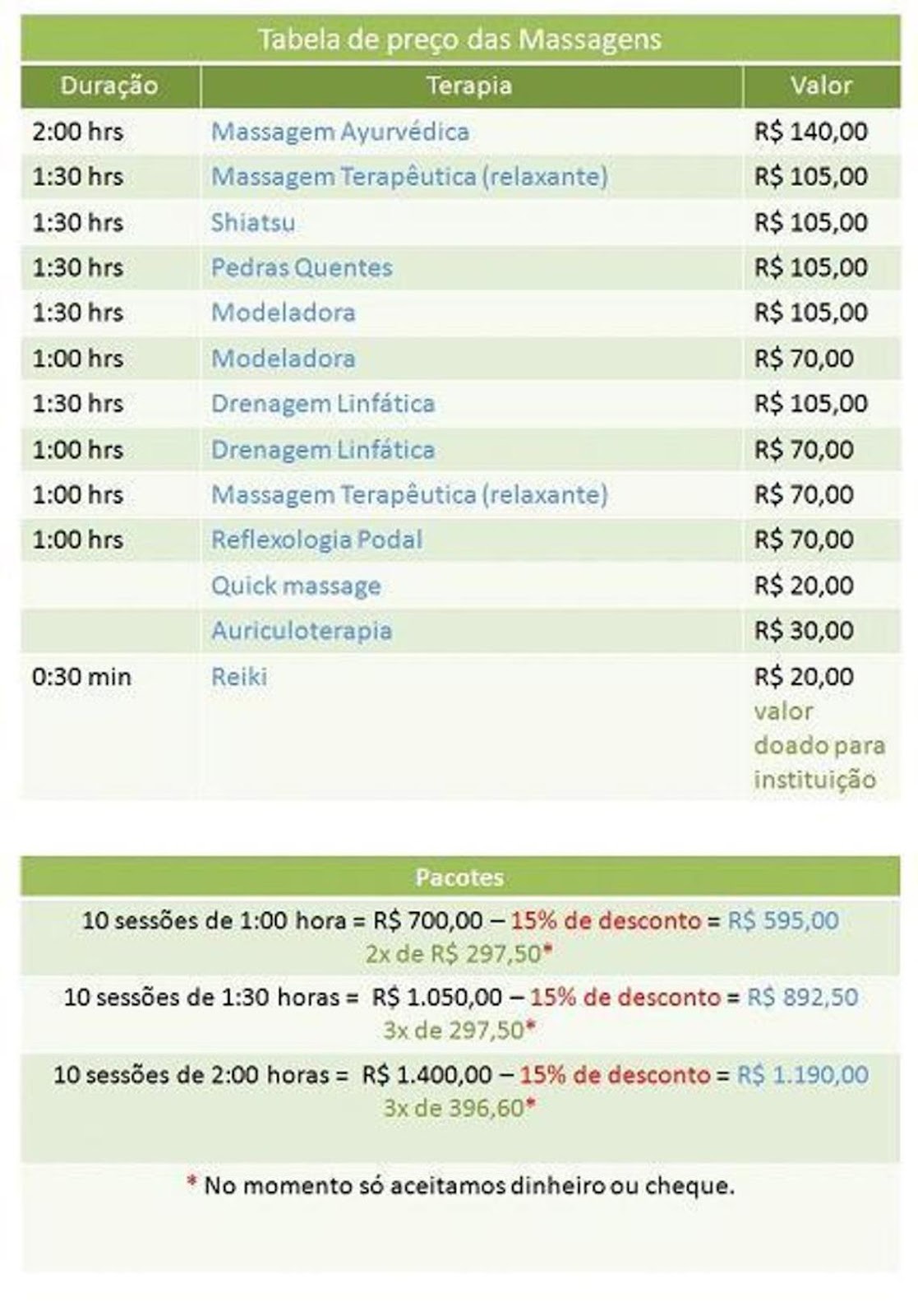 MASSAGEM INDAIATUBA: TABELA DE PREÇO