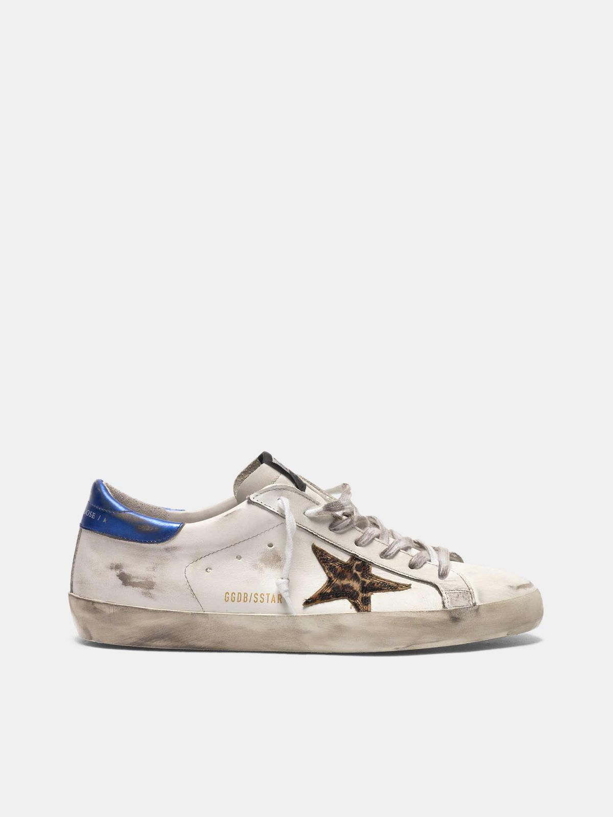 Super-Star sneakers with leopard-print star and blue heel tab | Golden Goose